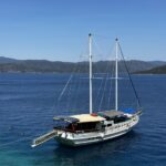 Embarkation at Fethiye Harbor 10:30 11:00AM Depending on weather conditions, we set course for Kızıl Island, Dalyan Bay, or Turunç Bay. Enjoy a relaxing day of swimming and snorkeling in tranquil waters. In the afternoon, we sail to our next route and anchor overnight at Tersane Island or another peaceful cove nearby.